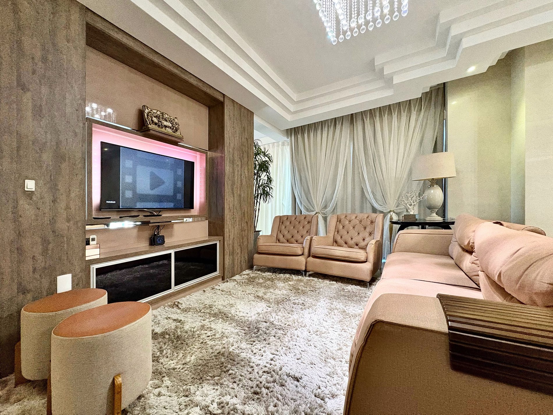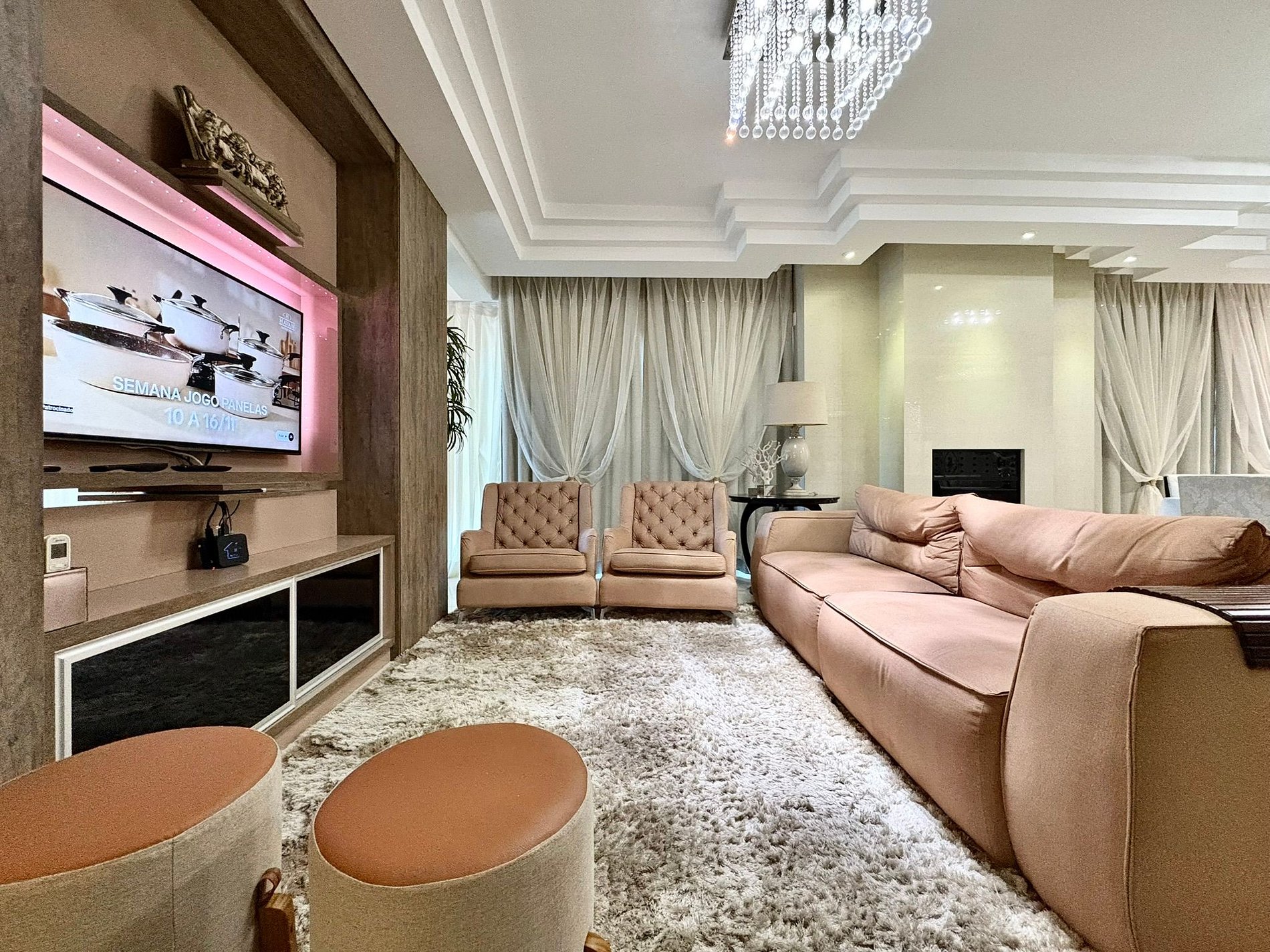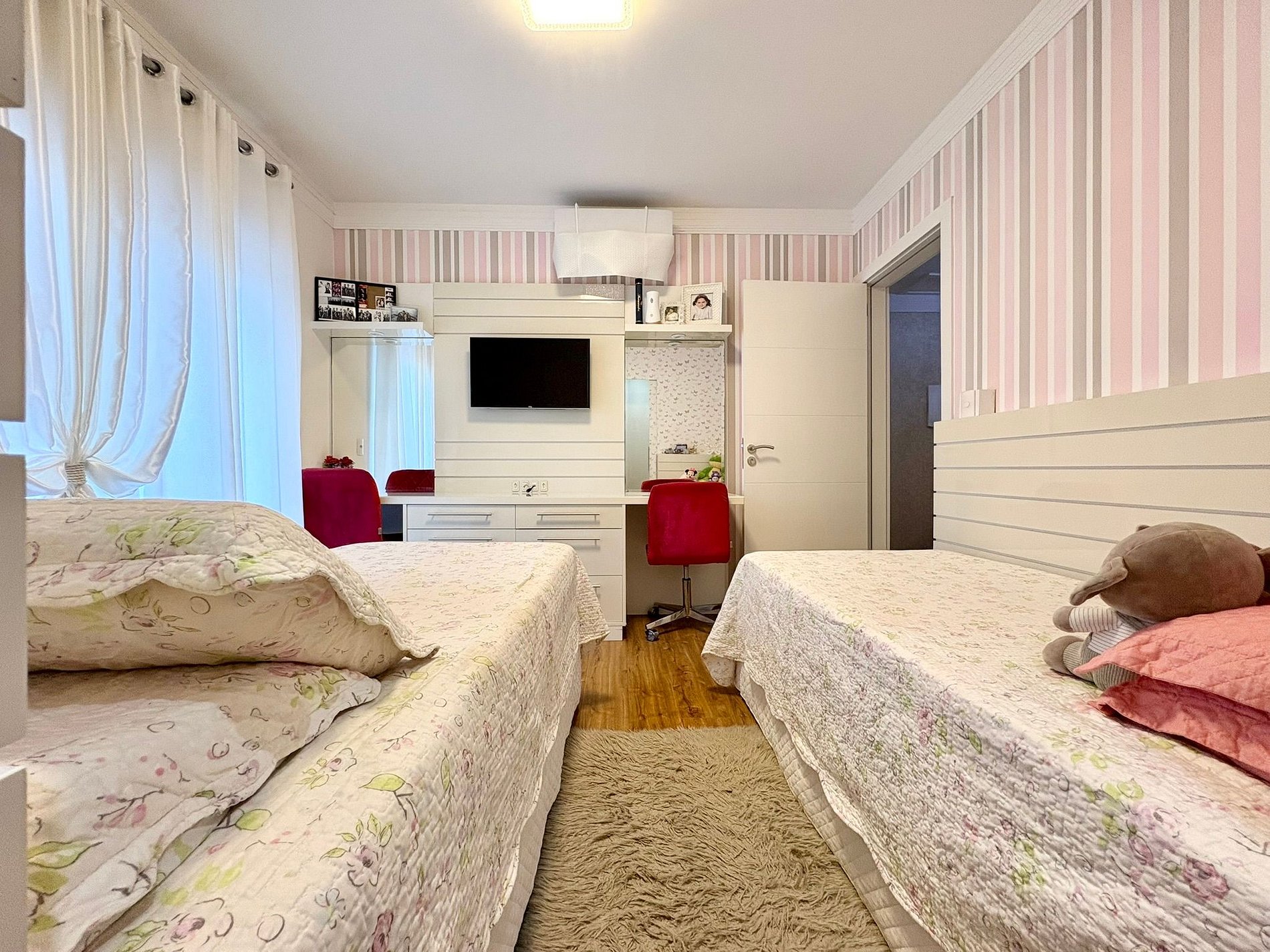 Apartamento alto padrão, pé na areia, com andar inteiro exclusivo, sem corredor e sem vizinhos, garantindo total privacidade para sua família. São 4 suítes amplas, todas com ar-condicionado, camas confortáveis e televisão nos quartos, além de ambientes bem iluminados, organizados e preparados para uma estadia confortável e tranquila.