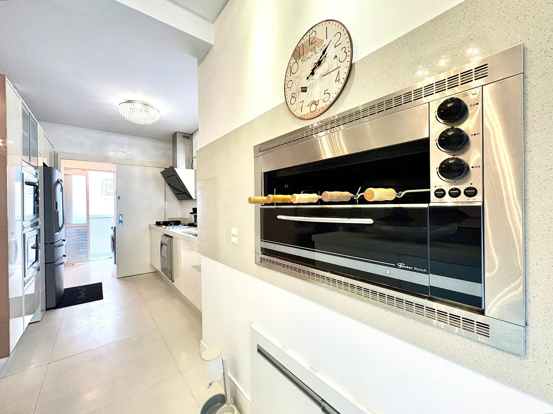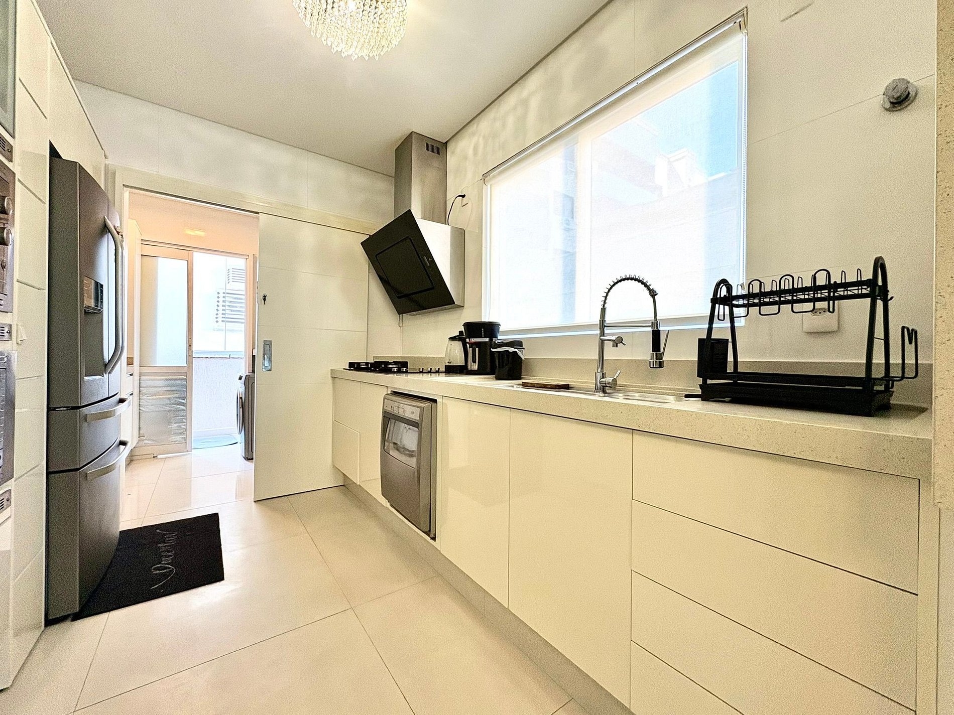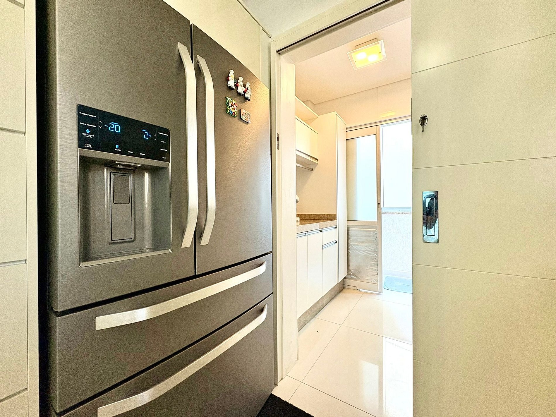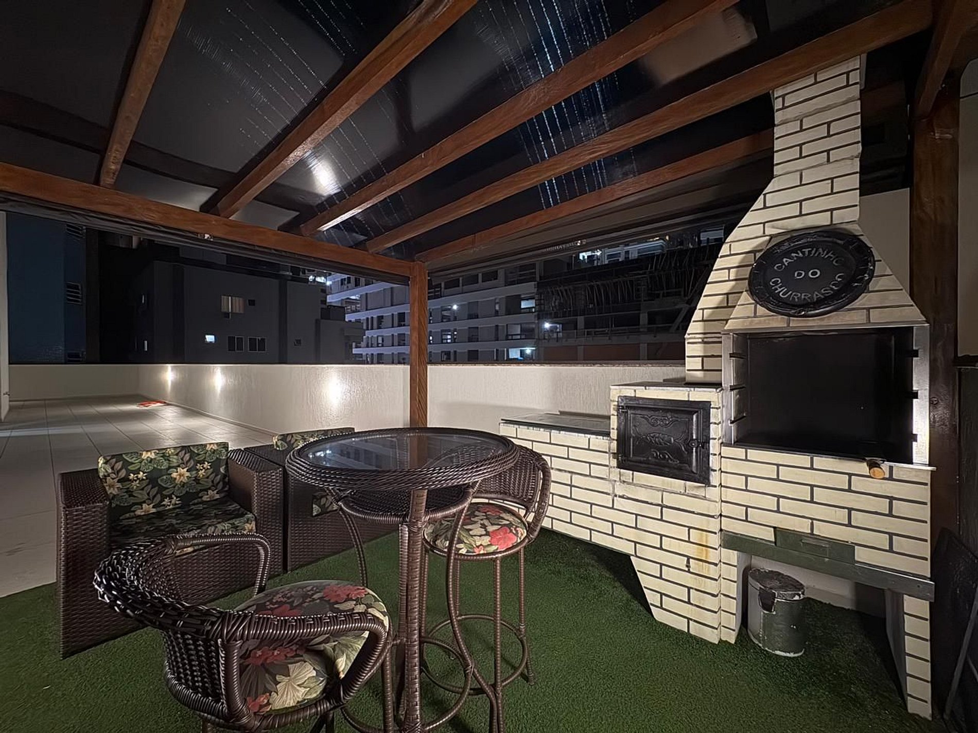 A área social integra sala, contando com cozinha completa equipada com eletrodomésticos de última geração, churrasqueira a gás interna e área gourmet externa com churrasqueira a carvão, ideal para reunir a família e aproveitar bons momentos. O apartamento ainda possui terraço amplo, perfeito para crianças brincarem com segurança, além de chuveiros a gás e banheira para relaxar após a praia.
