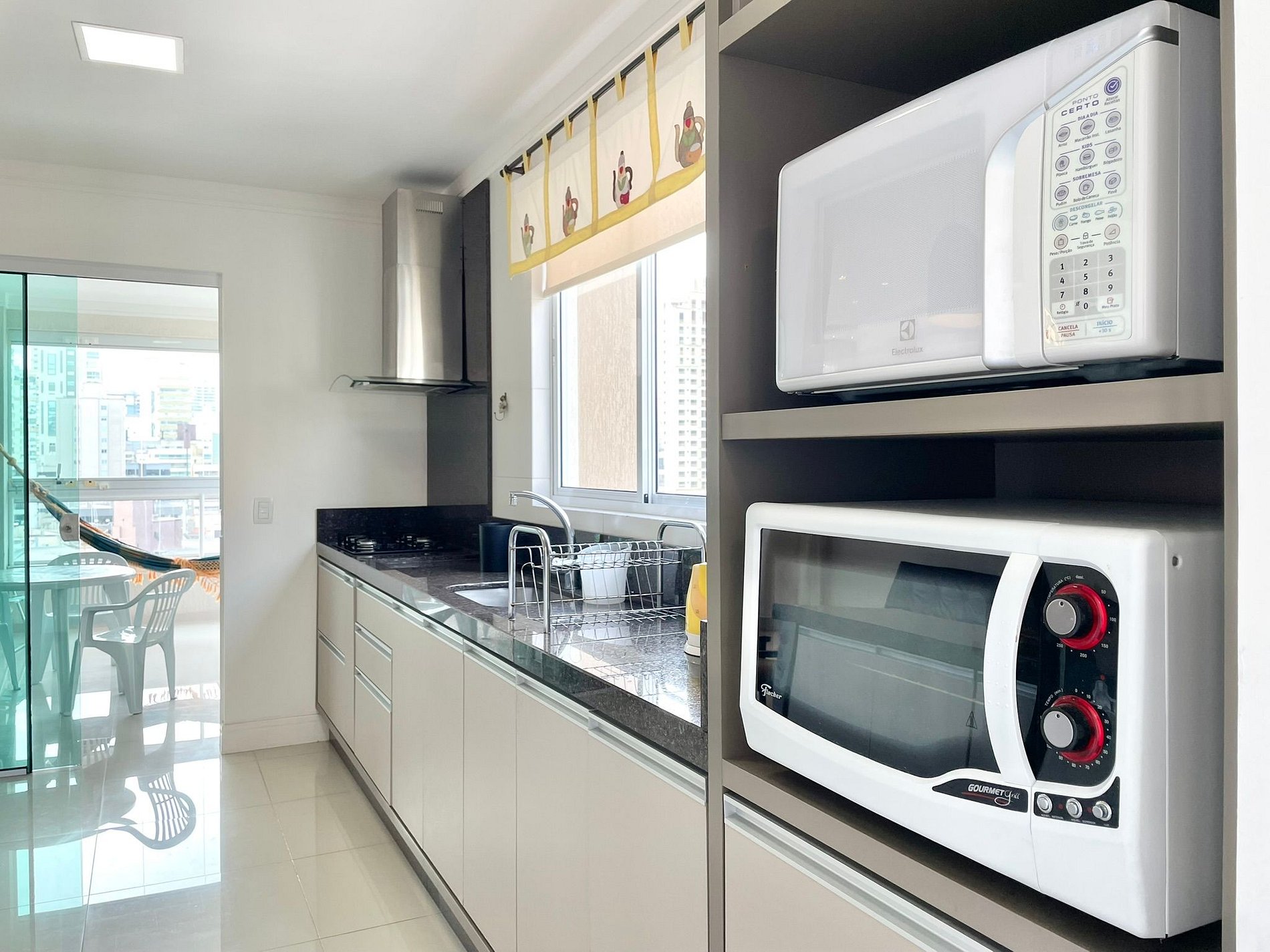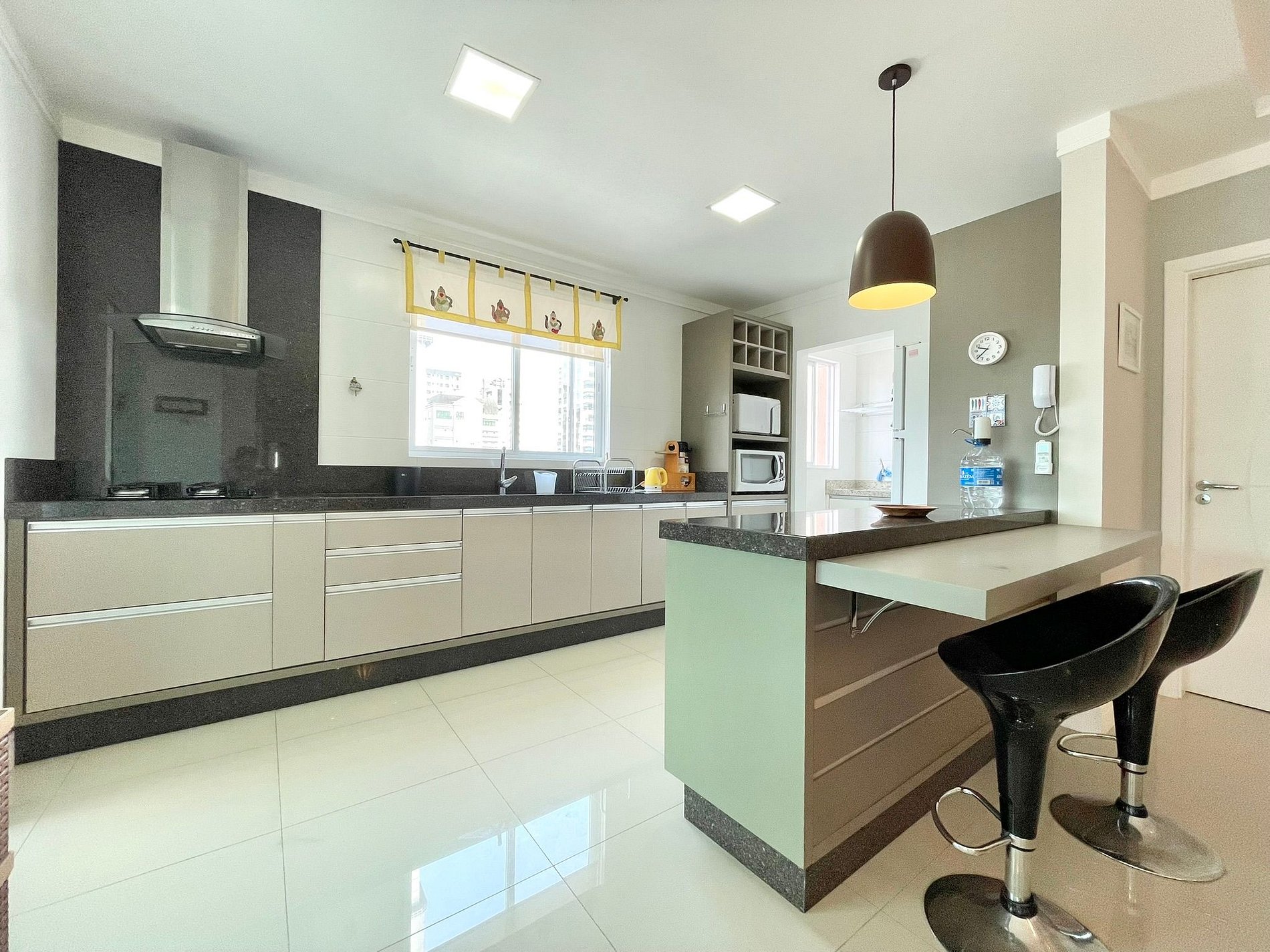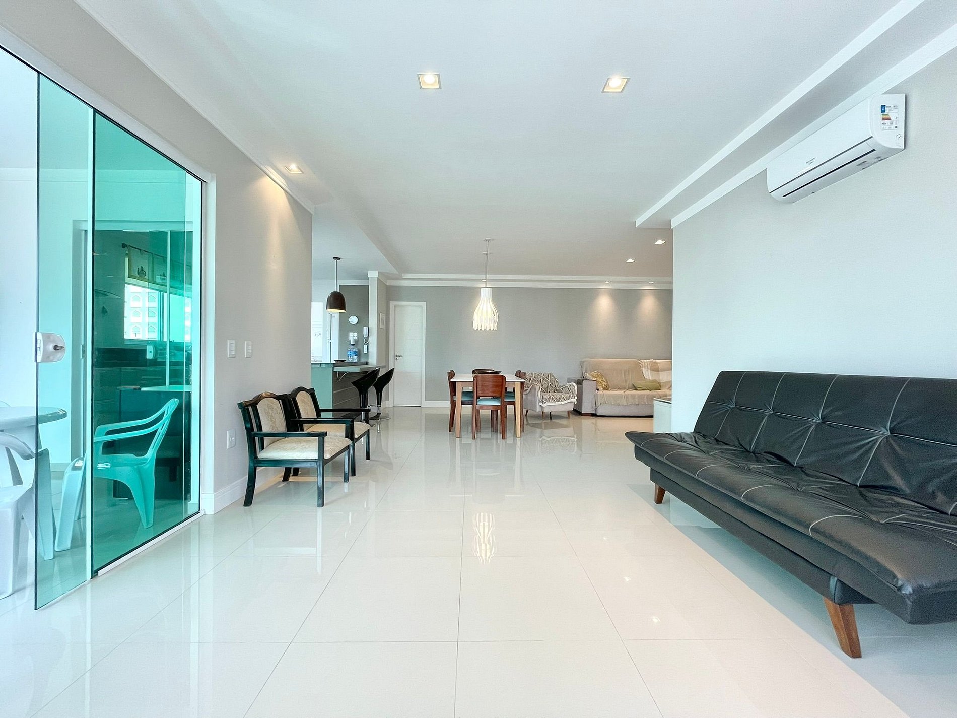 No 9° andar, o imóvel recebe sol na sacada e nos quartos, criando um ambiente naturalmente iluminado e acolhedor, perfeito para começar bem o dia ou relaxar depois da praia. A sala de estar climatizada oferece espaço amplo para reunir a família, integrada à área de jantar e à cozinha completa, equipada para quem gosta de praticidade sem abrir mão de conforto.