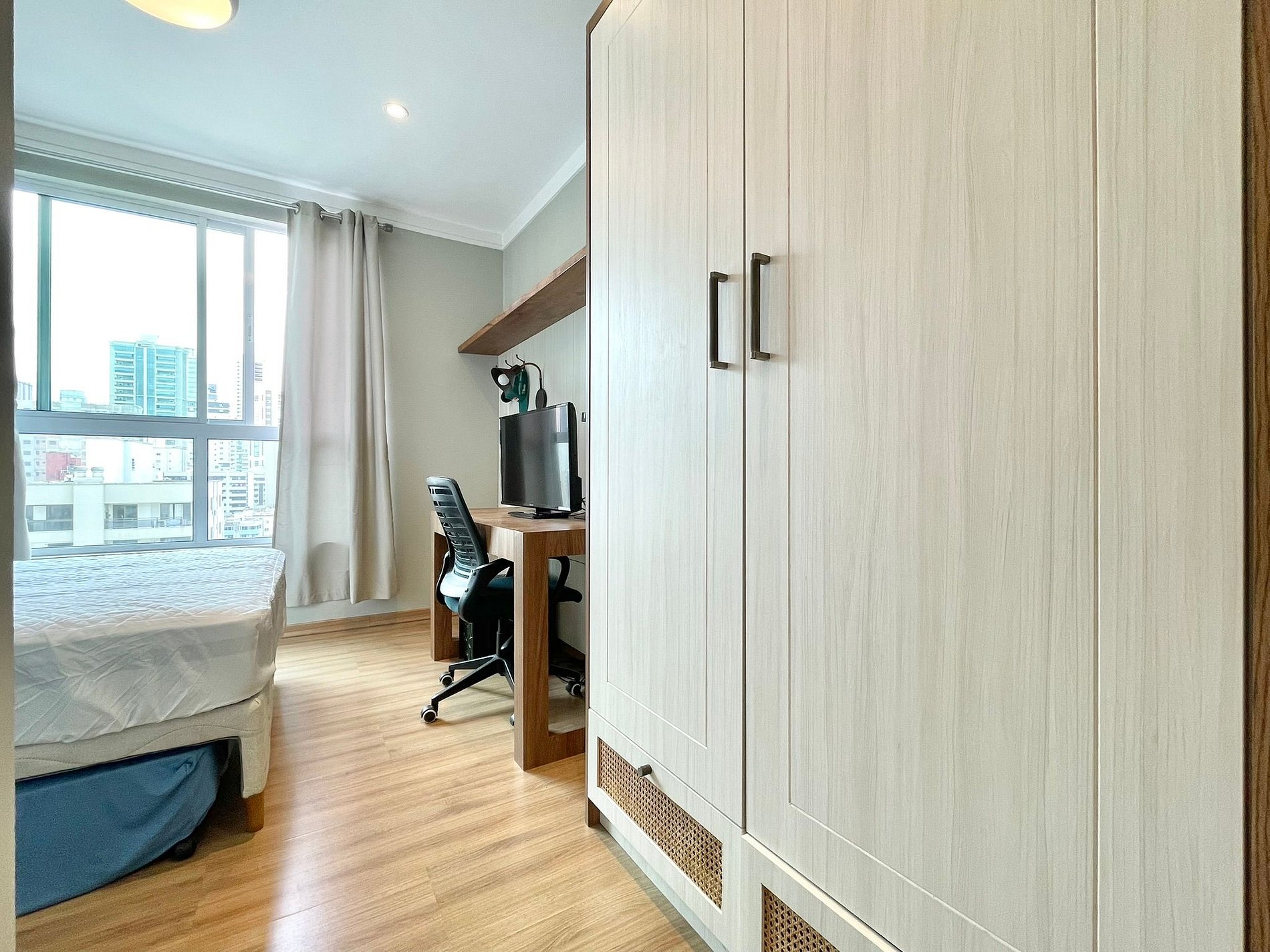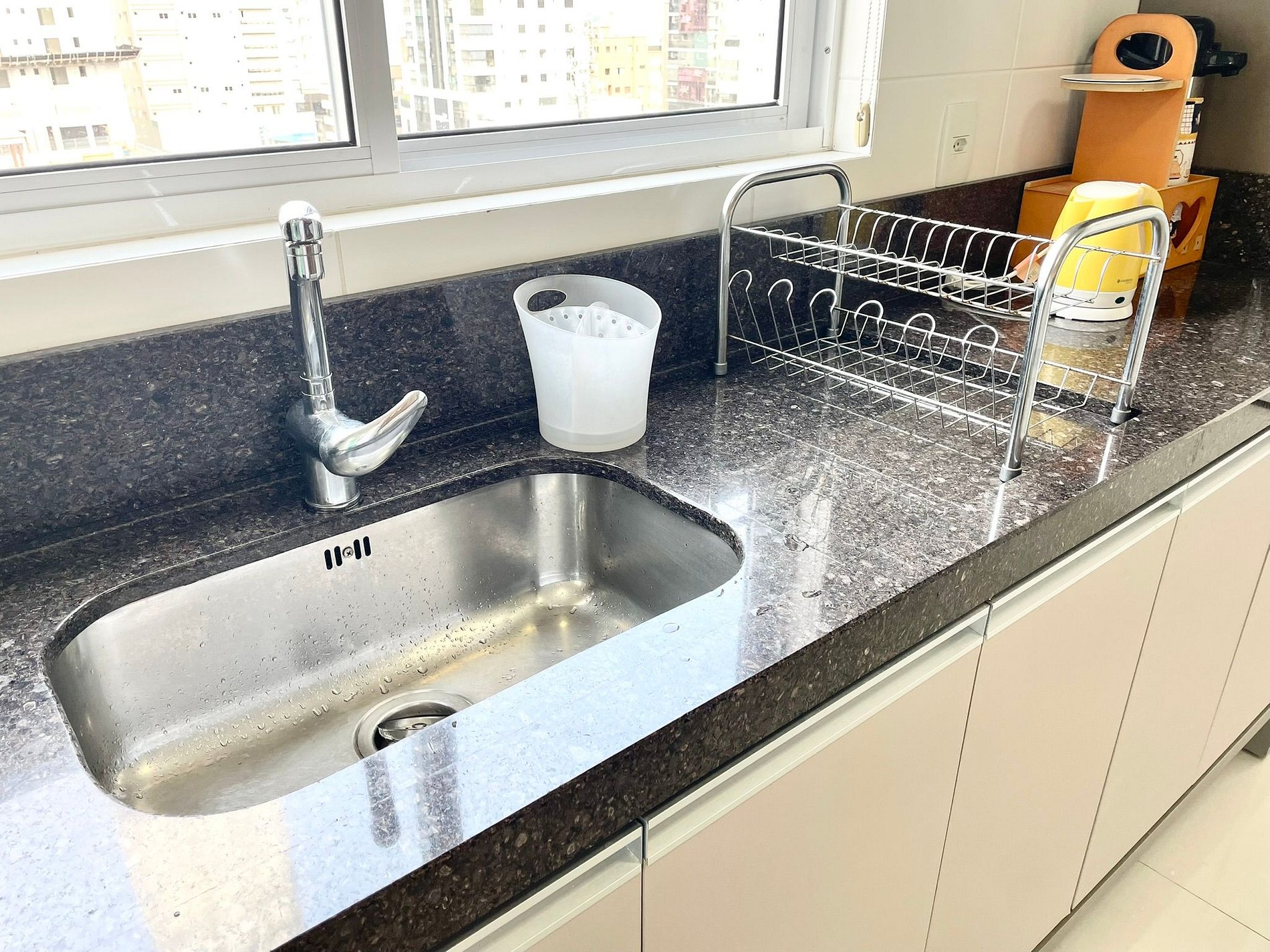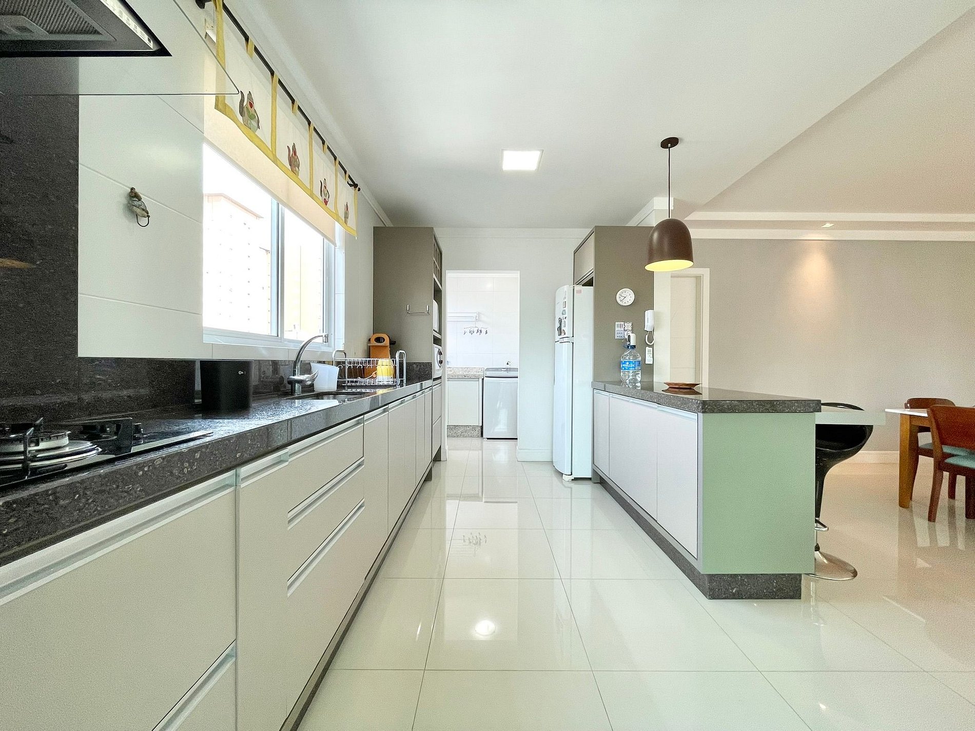 No 9° andar, o imóvel recebe sol na sacada e nos quartos, criando um ambiente naturalmente iluminado e acolhedor, perfeito para começar bem o dia ou relaxar depois da praia. A sala de estar climatizada oferece espaço amplo para reunir a família, integrada à área de jantar e à cozinha completa, equipada para quem gosta de praticidade sem abrir mão de conforto.